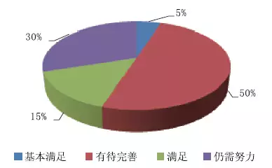 針對現(xiàn)有產(chǎn)品是否已經(jīng)滿足行業(yè)發(fā)展需要,認為基本滿足的占比5%;有待完善的占比50%;滿足的占比15%;仍需努力占比30%。如圖6所示。