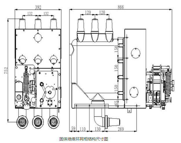 固體柜的固體絕緣系統(tǒng)采用APG工藝成型的固封極柱將真空滅弧室和上下出線座等載流導體封裝成一個整體。隔離開關安裝在固封極柱的腔體內(nèi),使得相間絕緣以固體絕緣方式為主絕緣方式。單相母線可擴展設計,實現(xiàn)功能單元無線擴展。