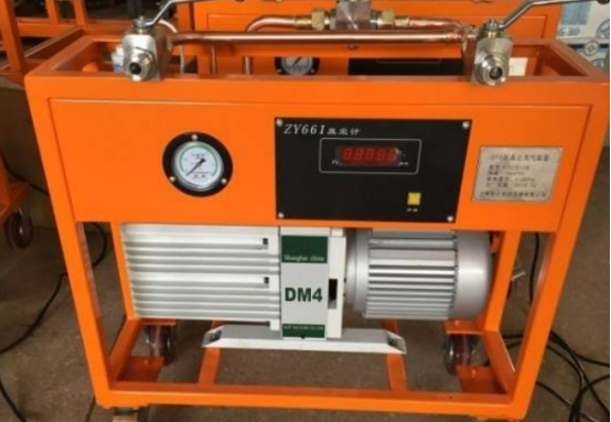 4)最有用最專業(yè)的辦法,是SF6抽真空補(bǔ)氣設(shè)備,單級旋片泵極限真空度能夠到達(dá)10Pa,雙級旋片泵理論極限真空度可到達(dá)6.2*10-4pa,但是流量不大于100m3/h;