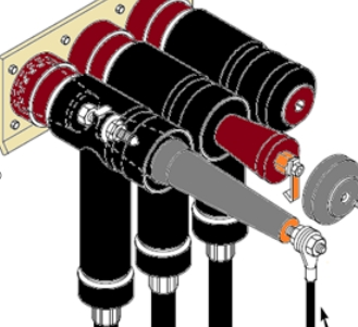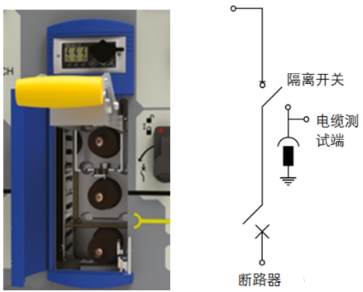 即對(duì)三工位開(kāi)關(guān)接地靜觸頭裝置絕緣套管和可拆開(kāi)的接地短接排,如施耐德的RM6,為了測(cè)驗(yàn)電纜絕緣和查找毛病,有可能在不斷開(kāi)銜接設(shè)備的情況下,經(jīng)RM6向電纜引進(jìn)42kV直流實(shí)驗(yàn)電壓,繼續(xù)15分鐘;為了經(jīng)過(guò)接地觀察窗引進(jìn)直流實(shí)驗(yàn)電壓,應(yīng)閉合接地開(kāi)關(guān)和翻開(kāi)可移動(dòng)接地銜接設(shè)備,實(shí)驗(yàn)時(shí)需運(yùn)用特殊實(shí)驗(yàn)夾子。