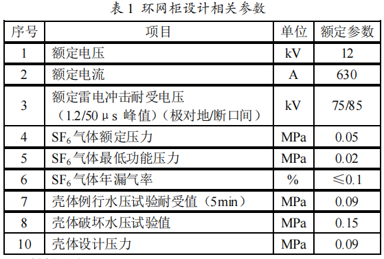 環(huán)網(wǎng)柜殼體形狀不同有箱式和筒式之分。由于箱式結(jié)構(gòu)有利于完成進(jìn)出線.配電方案的施行,可是箱式在承受壓力的局限性,使箱體不能夠承受太高的壓力。下面介紹一種環(huán)網(wǎng)柜氣箱的規(guī)劃辦法。與氣箱規(guī)劃有關(guān)的環(huán)網(wǎng)柜額定參數(shù)見表1。