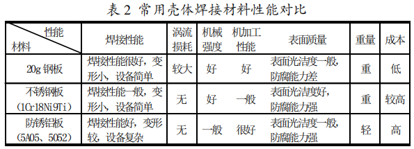 環(huán)網(wǎng)柜焊接氣箱常用材料主要有20g鋼板、不銹鋼板(1Cr18Ni9Ti)、防銹鋁板(5A05,5052)等。其性能對比見表2。