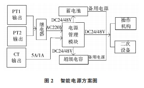 2.6智能電源環(huán)網(wǎng)柜的操作組織、操控器、通訊終端等二次設備都需求完畢不連續(xù)供電。為了行進供電的可靠性,請求在供電電源失電時,二次回路仍然會有電源,能夠持續(xù)可靠的動作,環(huán)網(wǎng)柜中有必要具有備用電源。為了行進供電電源的可靠性本電源的規(guī)劃首要選用了如下辦法:(1)環(huán)網(wǎng)柜普通選用雙進線,兩條進線互為備用給電源的充電模塊供電,當其中一條進線失電時,由繼電器將另一條進線的220V電源轉給充電模塊,保證整個柜子的二次回路持續(xù)供電。(2)當環(huán)網(wǎng)柜的兩條進線都失電的時分,為了使二次回路持續(xù)帶電,需求由備用電源持續(xù)供電。如今首要的備用電源是不連續(xù)電源(UPS)和蓄電池,還有的選用超級電容供電。為了行進供電的可靠性,本電源方案選用蓄電池與超極電容相分離,兩種電源可互為備用,能夠進一步行進供電的可靠性。智能電源的方案如圖2所示。