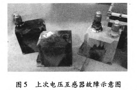2011年3月30日0:38,35kV垣潔線、35kV垣宏回A、B相電壓互感器擊穿,如圖5所示;2012年3月26日19:7:58,35kV垣潔線56號(hào)線路電壓互感器A、B、C相損壞,A、B相有炸裂現(xiàn)象。