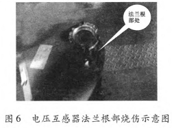 1)兩次擊穿均發(fā)生在電壓互感器法蘭根部,闡明與法蘭根部電場(chǎng)過于會(huì)集有關(guān)。正常作業(yè)條件下,在挨近帶電T處有絲絲電暈放電聲,標(biāo)明電壓互感器電場(chǎng)不均勻,如圖6所示。