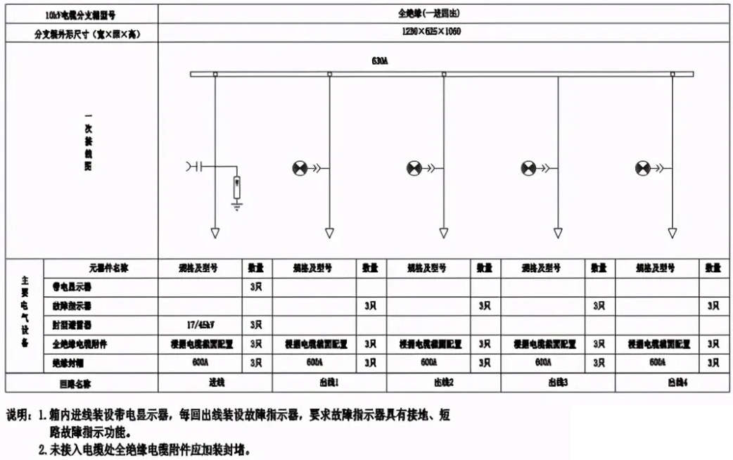 電纜分支箱用于非主干回路的分支線路,作為末端負(fù)荷接入用電使用,適用于中小客戶集中區(qū)域進(jìn)行負(fù)荷分接時的接入用電,不應(yīng)接入主干環(huán)網(wǎng)及聯(lián)絡(luò)。電纜分支箱采用電纜進(jìn)線1回,出線2回或4回,出線回路數(shù)可根據(jù)使用需要選用,額定電流為630A。采用全絕緣、全封閉、全屏蔽可觸摸式結(jié)構(gòu),以及采取防凝露、防內(nèi)部故障電弧外泄等措施。