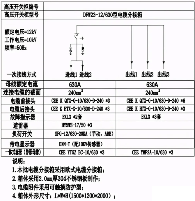 分支箱主要由箱體、母排接板、電纜接頭組成;箱體防護(hù)等級:IP43;母排接板:在電纜分支系統(tǒng)中起到母排的作用,其最大特點是全絕緣,全密封。包括二通接頭、三通接頭和四通接頭。